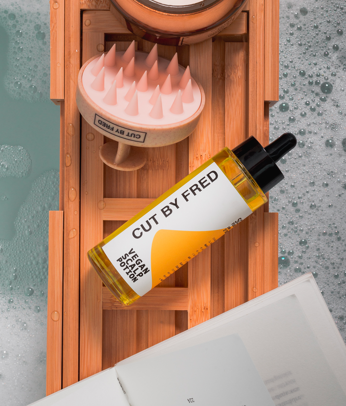- En complément nous vous conseillons d’opter pour un soin spécifique aux cuirs chevelus à problème. Grâce à une combinaison d’ingrédients naturels rigoureusement sélectionnés, notre Vegan Scalp Potion est un un soin en profondeur qui va non seulement apaiser les rougeurs, les démangeaisons et réduire les pellicules sèches, mais aussi stimuler la circulation du cuir chevelu et donc la pousse. Ça donne envie non ?